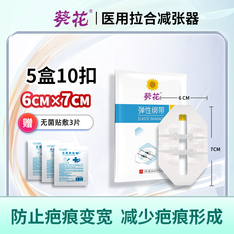 葵花减张器医用疤痕甲状腺刨腹产术后单扣拉链式免愈合伤口减张贴 看伤口面积选择对应型号 2盒共4扣【6*7cm】赠无菌贴敷3贴