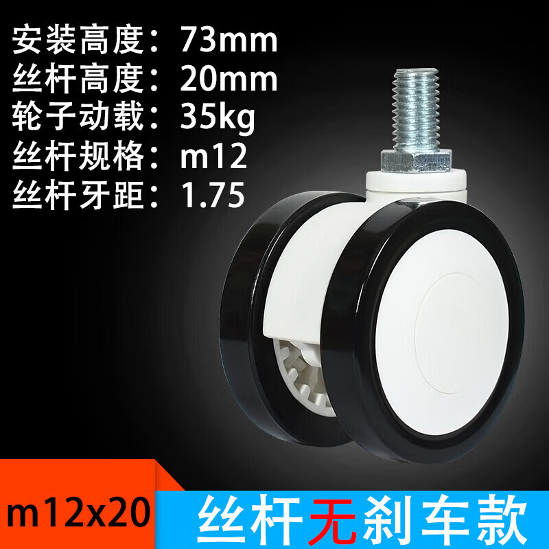 通用医用2寸2.5寸3寸4寸5寸m8m10m12m16丝杆万向轮轮子带刹车脚轮静音 2.5寸m12x20丝杆无刹款
