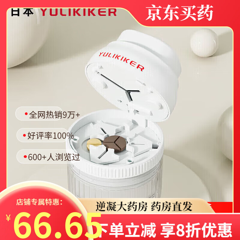 通用分药器三分之一 分药器一分二分四切药器药片精准便携切割器磨药 日本【1/3 1/2 1/4】可存药白色