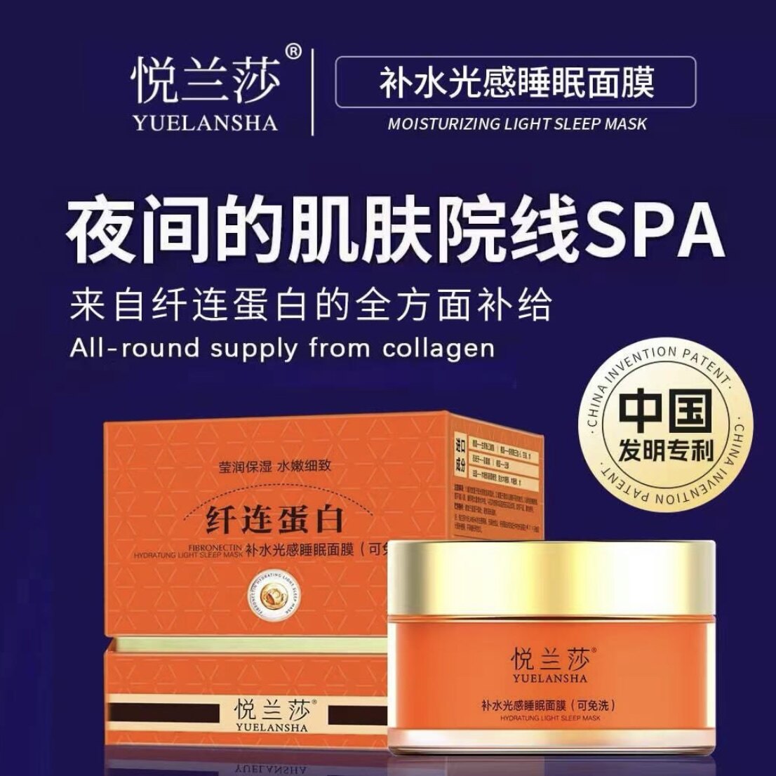 悦兰莎补水光感睡眠面膜纤连蛋白深层补水抛光焕亮嫩白免洗面膜霜