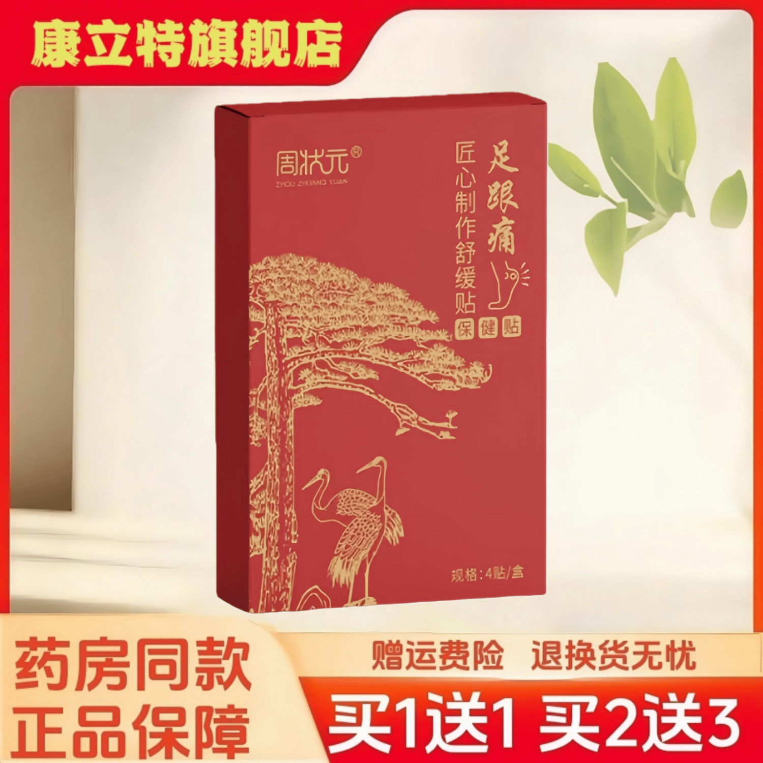 周状元足跟痛保健贴【买1送1】草本外用足跟不适舒缓贴 4贴/盒 【买2送3】实发5盒