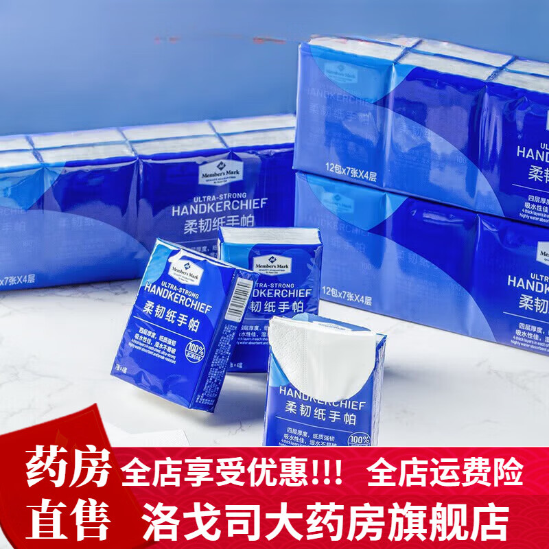 Member's Mark 柔韧手帕纸 48包*7张*4层 小包便携湿水不易破面巾纸 x x