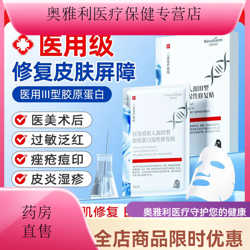通用重组III型人源化胶原蛋白创面敷贴非面膜创面护理药房 3盒(拍2发 1盒(5片装)