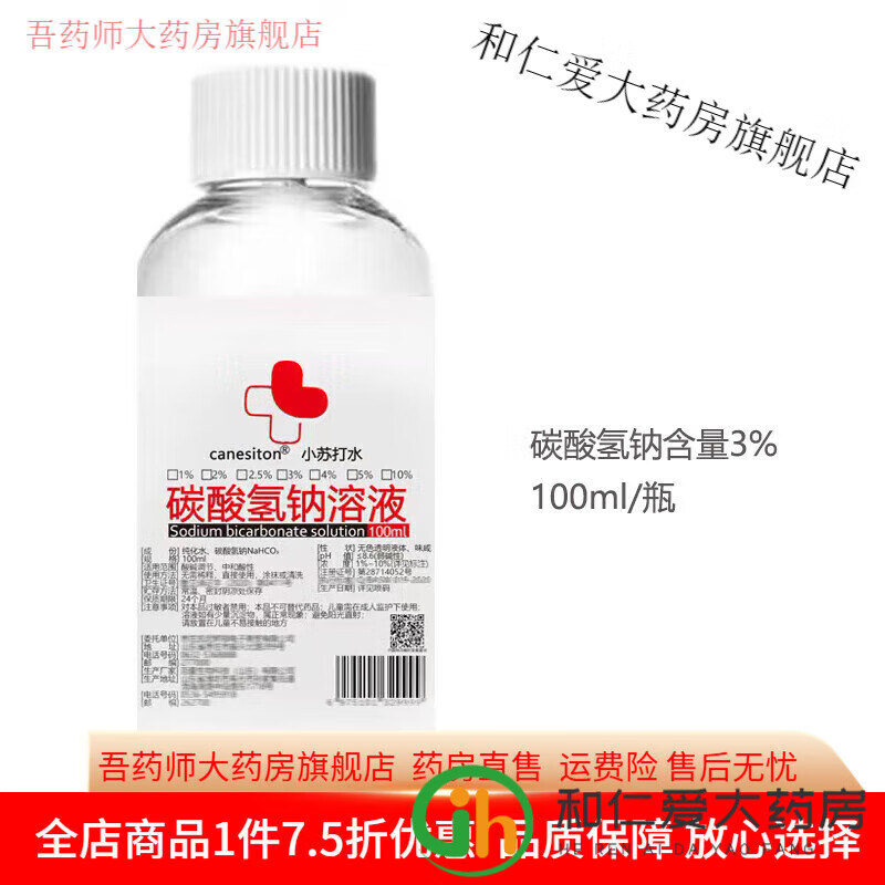 通用浓度2%3%4%5%水碳酸氢钠溶液漱口水冲洗调理弱碱 1%100ml买2+1拍3到手5
