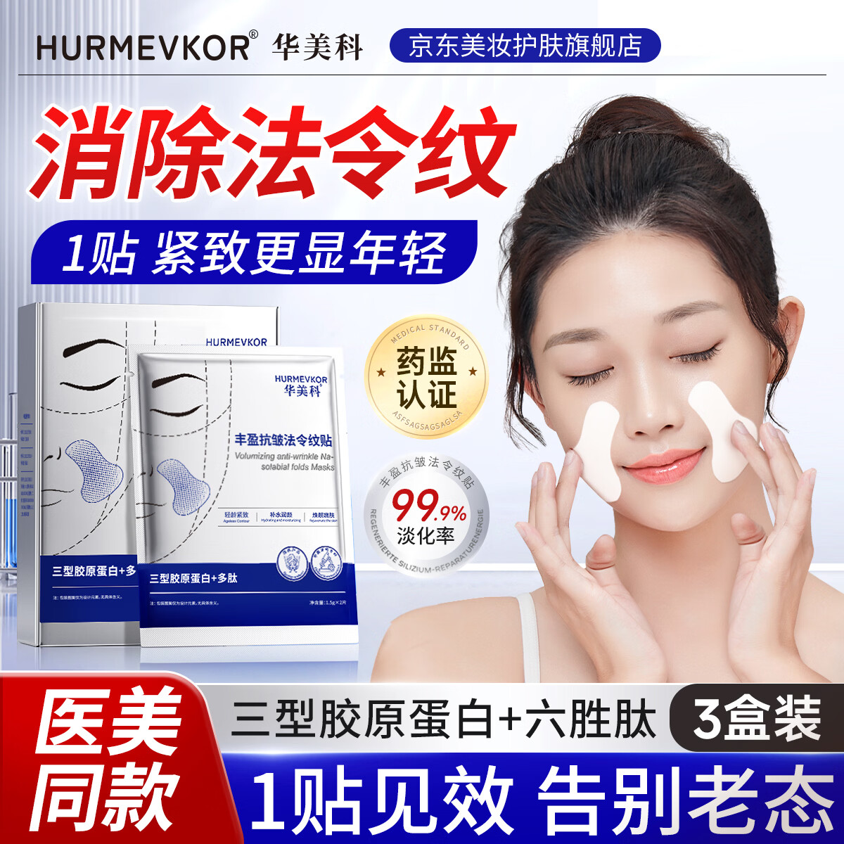 华美科 HURMEVKOR法令纹淡化神器贴提拉紧致抗皱淡纹贴川字纹面膜生日礼物送女生 丰盈抗皱法令纹贴2片*6袋/盒*3