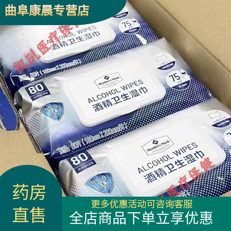A 安生罗比通用 Mark酒精卫生湿巾80片*1包加厚水刺无纺布约75%酒精擦手 3包 3*80抽