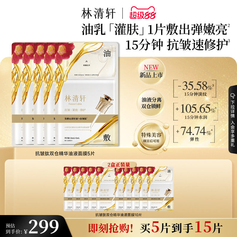 【立即抢购】林清轩山茶花抗皱肽双仓精华油液面膜油敷抗皱修护
