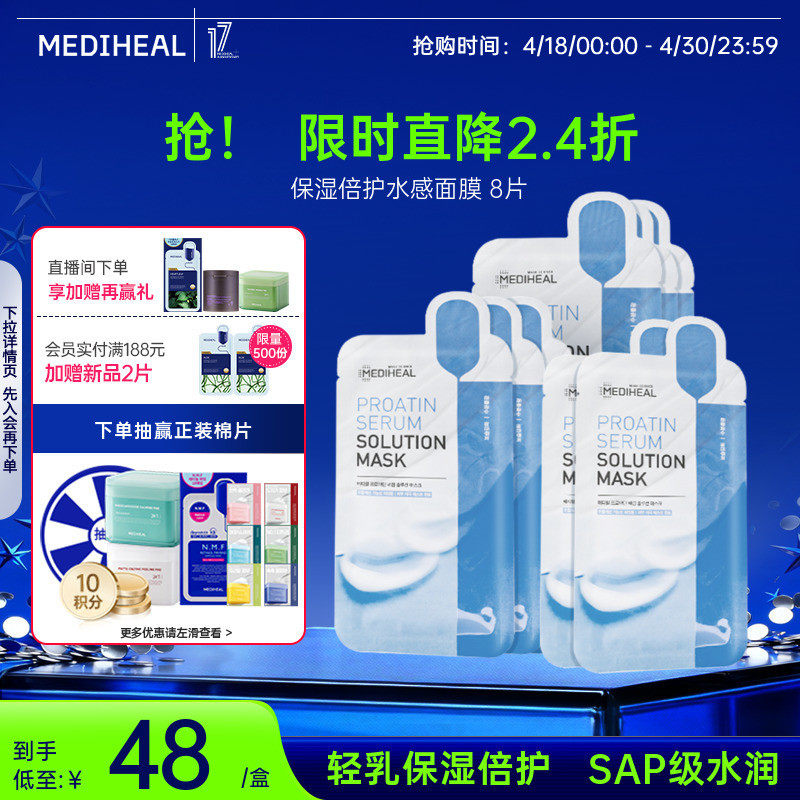 美迪惠尔保湿倍护水感面膜抗皱保湿补水均衡敏感肌肤男女8片