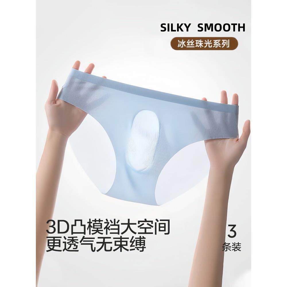 安美拉冰糖超薄内裤超薄超透凉感包臀抗菌桑蚕丝底档冰丝面膜内裤