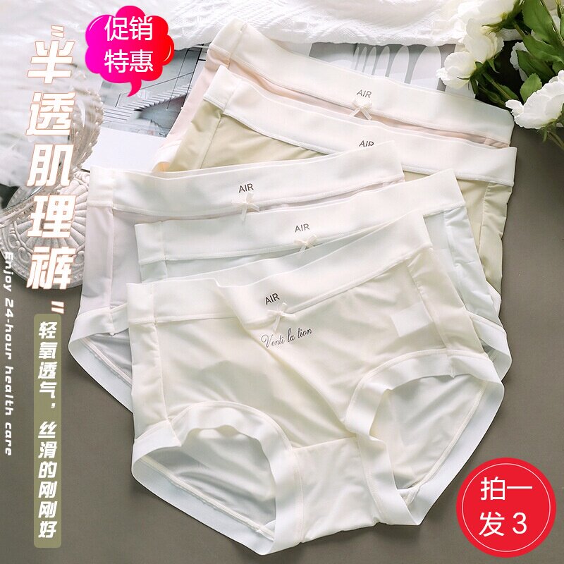 无痕冰丝内裤女夏季薄款中腰透气速干裸感面膜裤少女三角裤