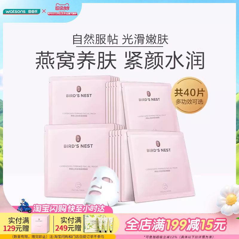 【热销推荐】屈臣氏燕窝皙白沁润保湿补水美白养肤面膜40片温和
