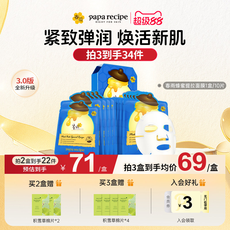 韩国春雨蜂蜜提拉面膜蓝10片淡化细纹紧致滋养【效期至27年2月】