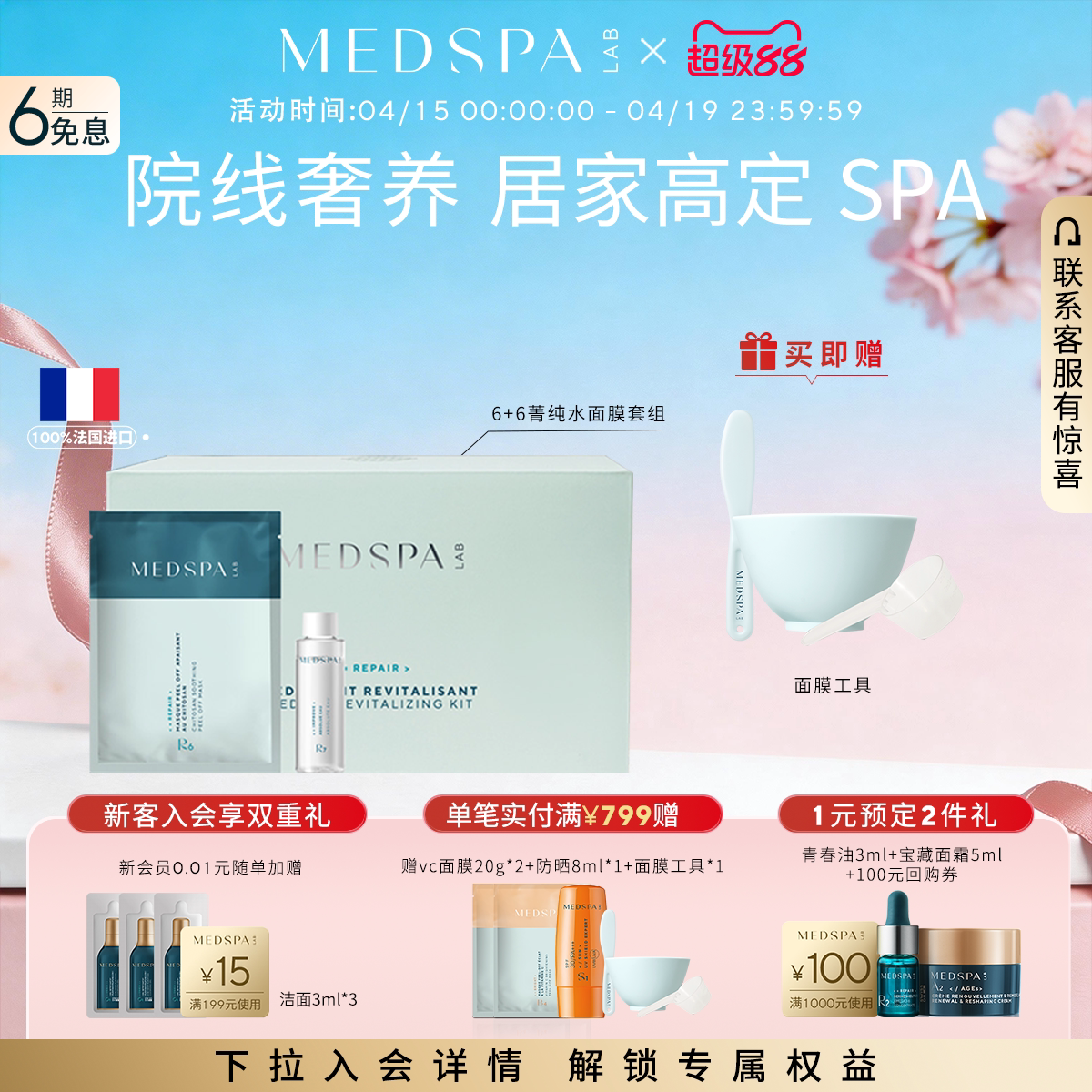 法国美帕MEDSPA面部套装菁纯水壳聚糖面膜6组/盒滋养修护