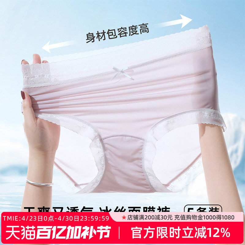 猫系液体裤蚕丝面膜中腰内裤女蕾丝无痕冰丝舒适女士三角裤袋装