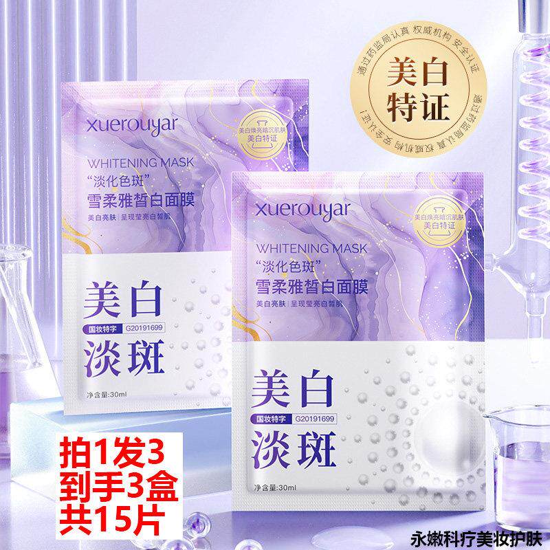 拍1发3 XUEROUYAR雪柔雅皙白面膜5片装 改善暗沉色斑