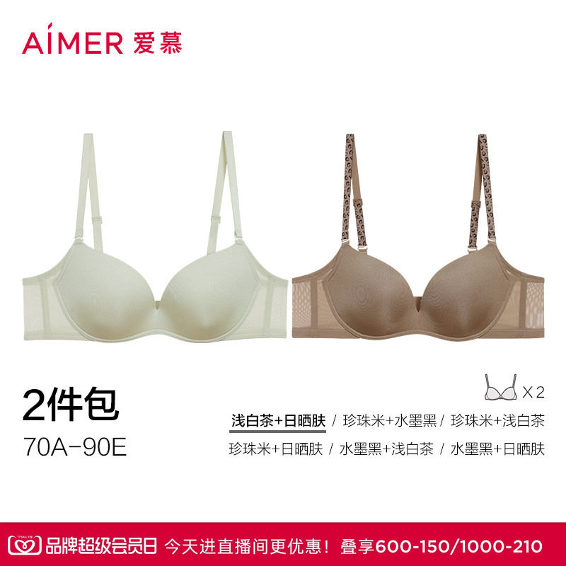 【面膜文胸2件包】爱慕内衣女大胸显小薄/小胸聚拢软支撑净痕文胸
