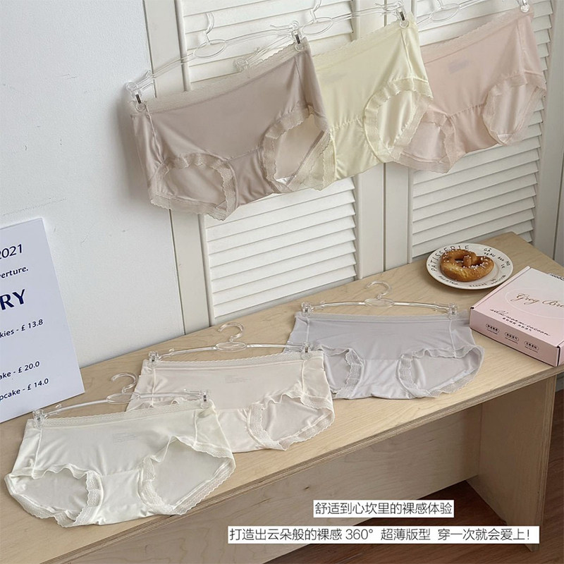 超薄10D冰丝面膜内裤女士甜美蕾丝花边蝴蝶结少女无痕凉感三角裤