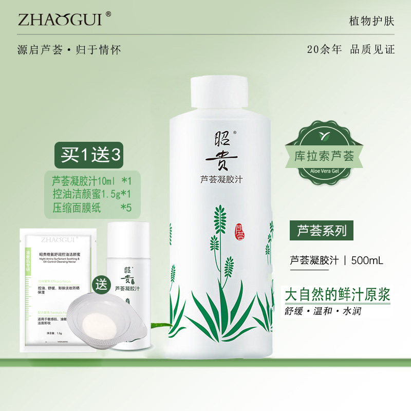昭贵芦荟水凝胶汁500ml 爽肤水面膜水补水保湿清爽舒缓湿敷水