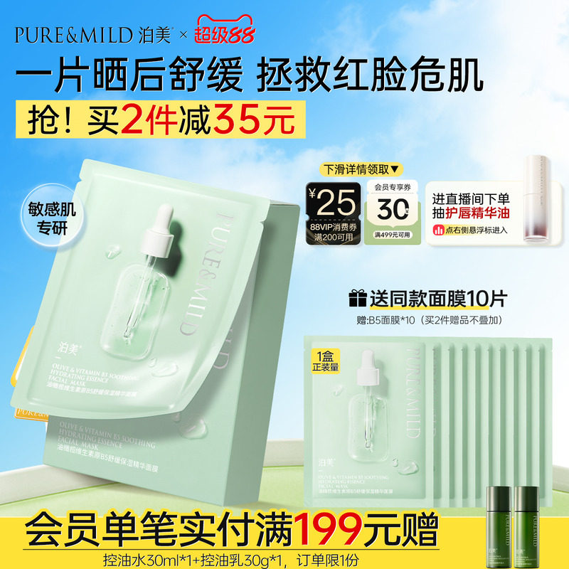 泊美油橄榄B5面膜补水保湿舒缓褪红敏感肌玻尿酸舒缓面膜官方正品