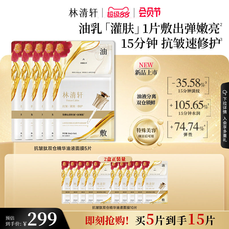 【立即抢购】林清轩山茶花抗皱肽双仓精华油液面膜油敷抗皱修护