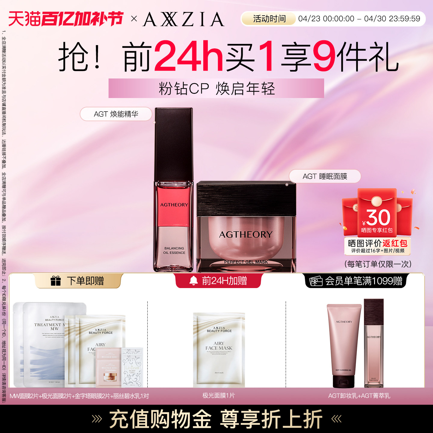 【晓姿粉钻CP】AGT涂抹睡眠面膜+AGT焕能精华水油同补透亮紧致