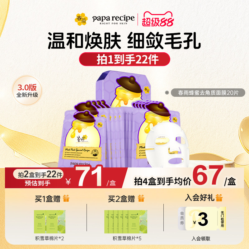韩国paparecipe蓝春雨蜂蜜蓝铜胜肽胶原蛋白面膜紧致提拉20片正品