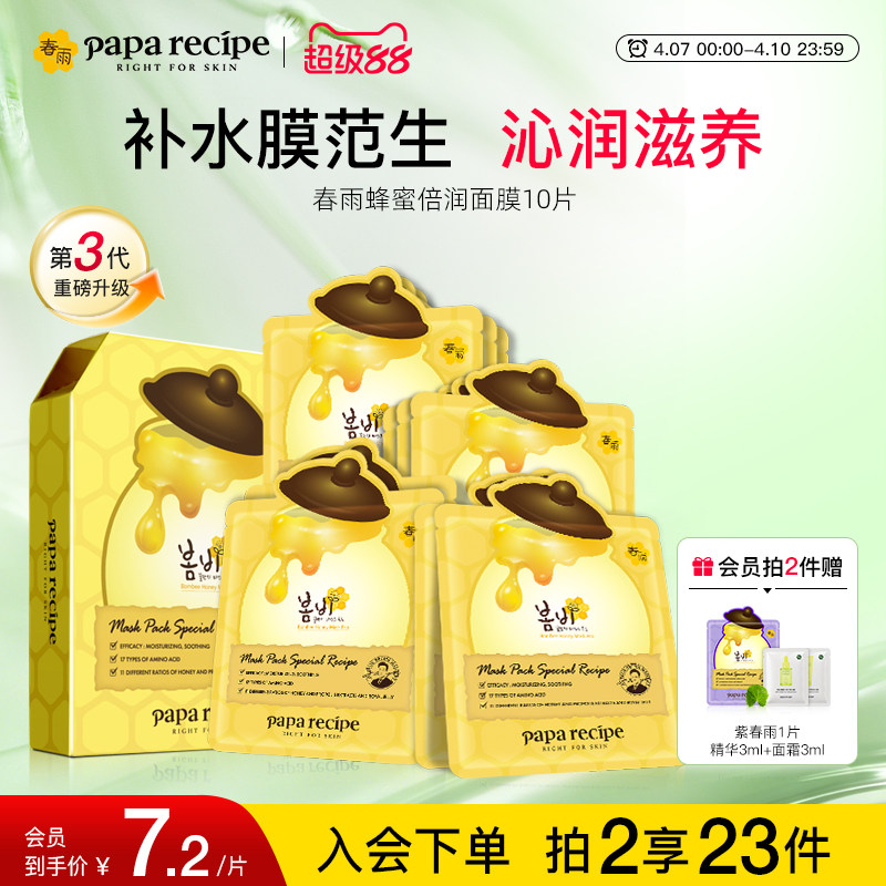 【新升级】韩国paparecipe黄春雨蜂蜜贴片干皮面膜补水第一名正品