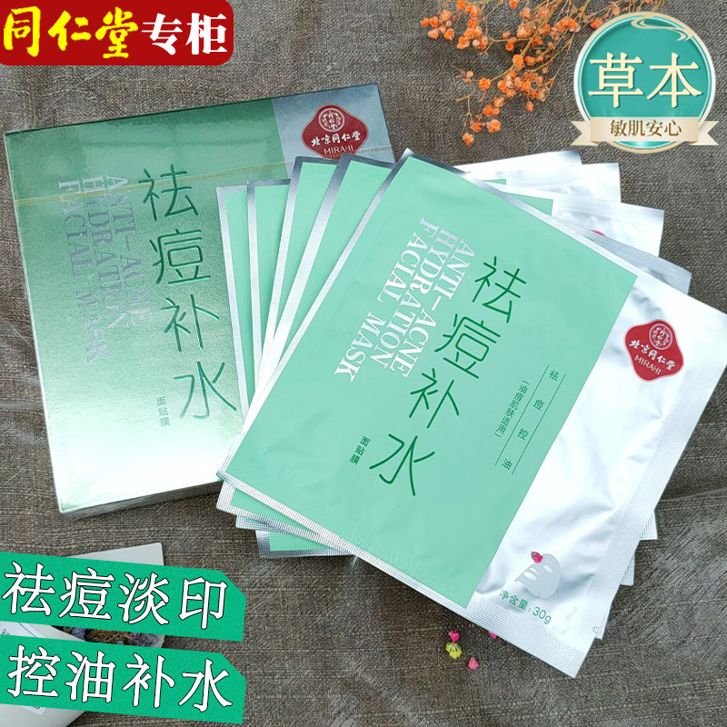 同仁堂祛痘补水面膜改善毛孔淡化痘印青春痘保湿舒缓粉刺闭口黑头