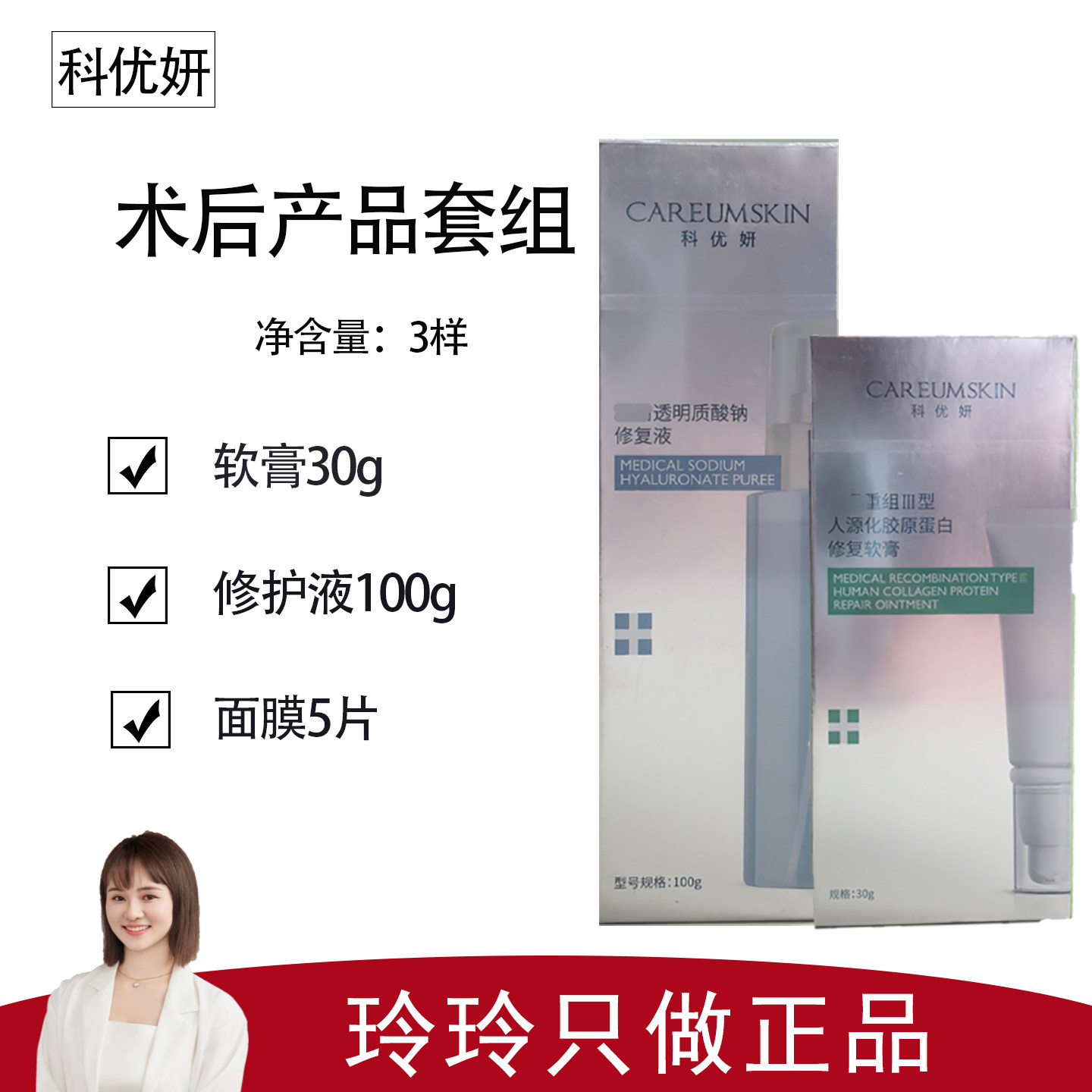 【科优妍】透明质酸修护液100g+人源软膏30g+面膜5片 术后4件套
