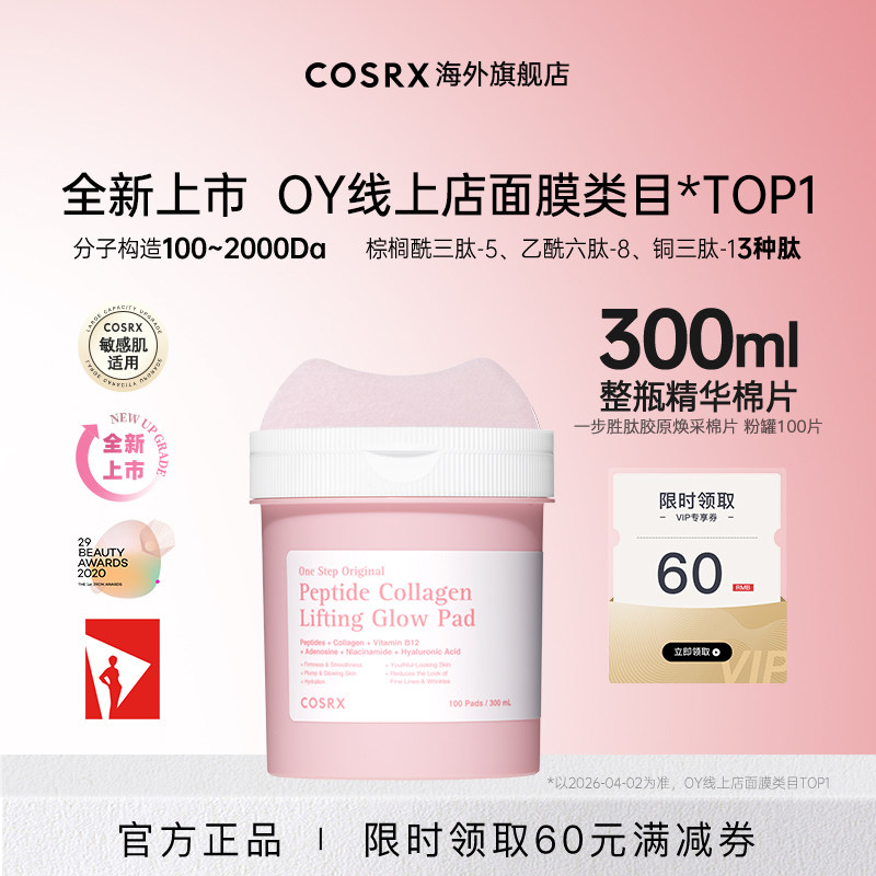 COSRX多肽胶原蛋白抗皱棉片100片补水提亮淡纹湿敷棉提拉贴片面膜