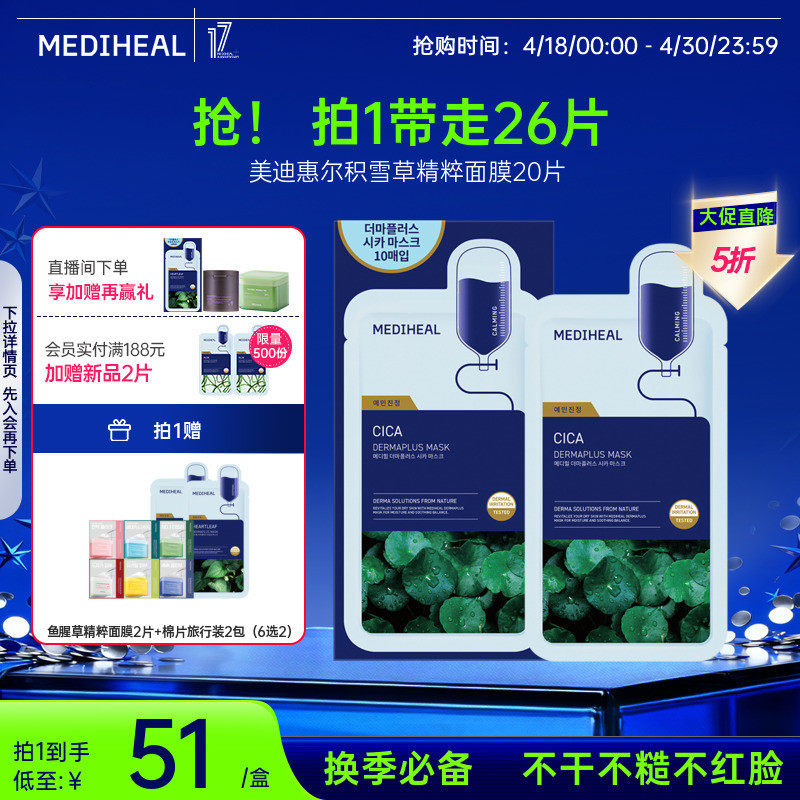 【净透舒缓】美迪惠尔官方旗舰店积雪草精粹面膜20片舒缓保湿低敏