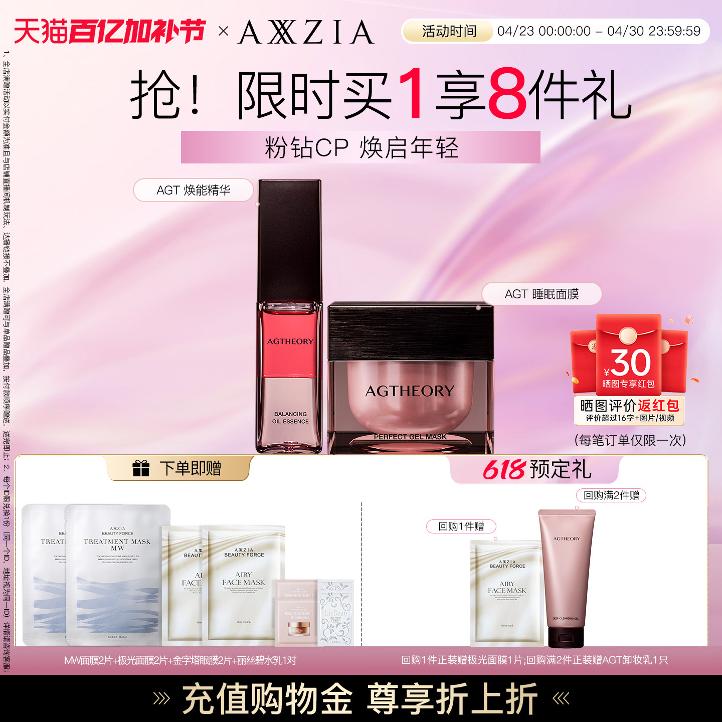 【晓姿粉钻CP】AGT涂抹睡眠面膜+AGT焕能精华水油同补透亮紧致