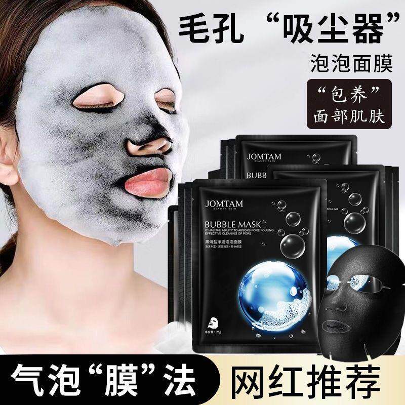 黑海盐泡泡面膜深层清洁毛孔去黑头提亮肤色补水保湿温和呼吸黑膜