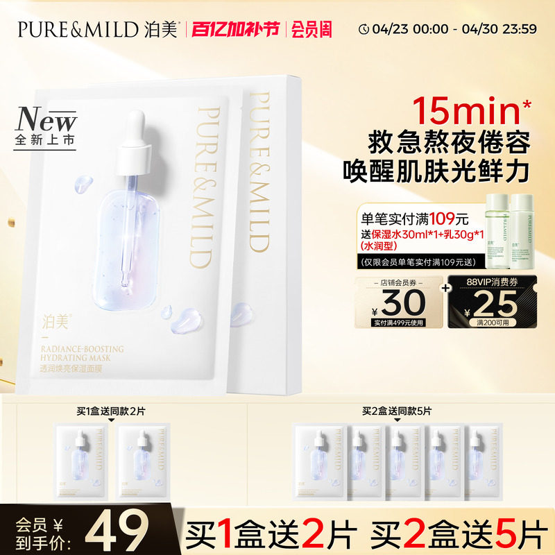 泊美焕亮保湿补水面膜熬夜去黄提亮肤色抗皱紧致舒缓官方正品