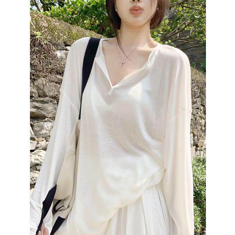 大码防晒罩衫女夏季2026新款微透面膜长袖t恤女薄款外搭显瘦上衣