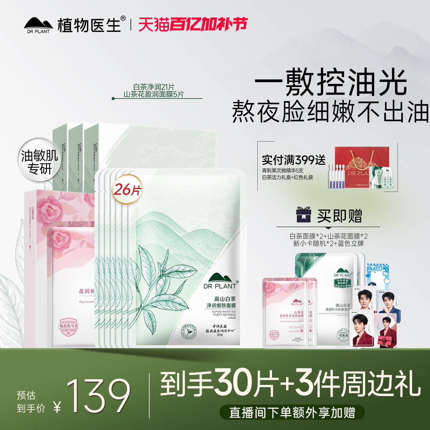 【王俊凯代言】植物医生官方旗舰店白茶控油补水贴片面膜正品