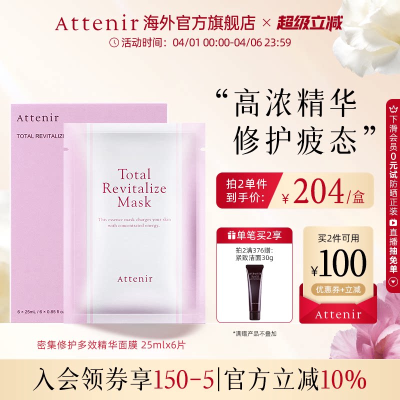 【立即抢购】艾天然密集修护多效紧致锁水维稳补水精华面膜