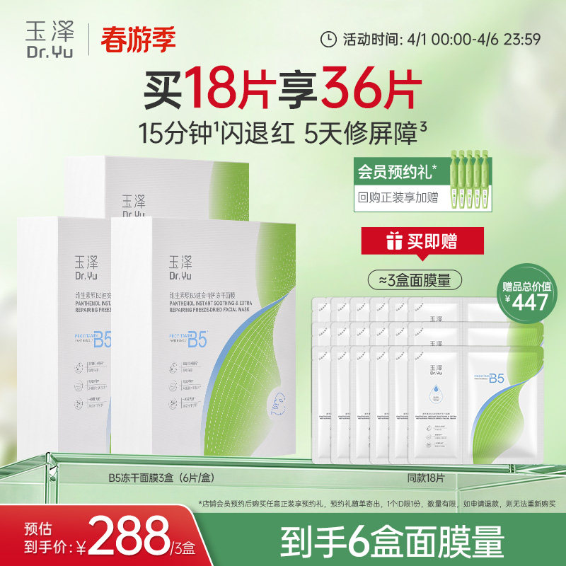 玉泽面膜套装积雪草修护面膜二代B5冻干面膜舒缓保湿