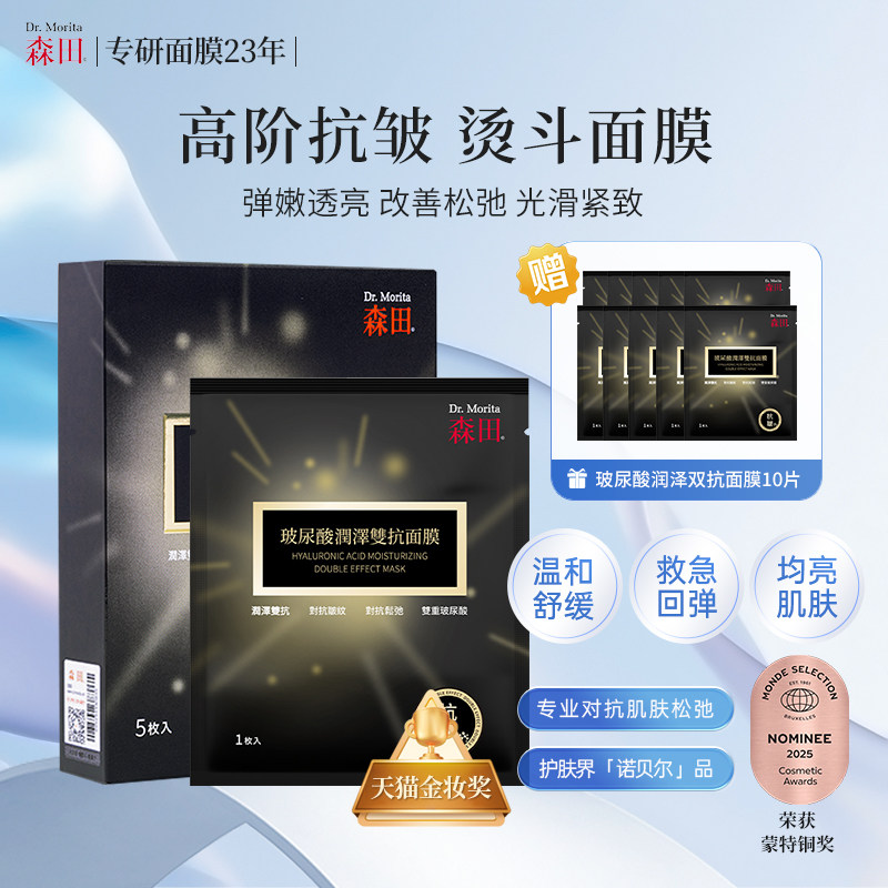 森田玻尿酸润泽双抗面膜抗皱紧致舒缓补水保纹提拉滋润温和无刺激