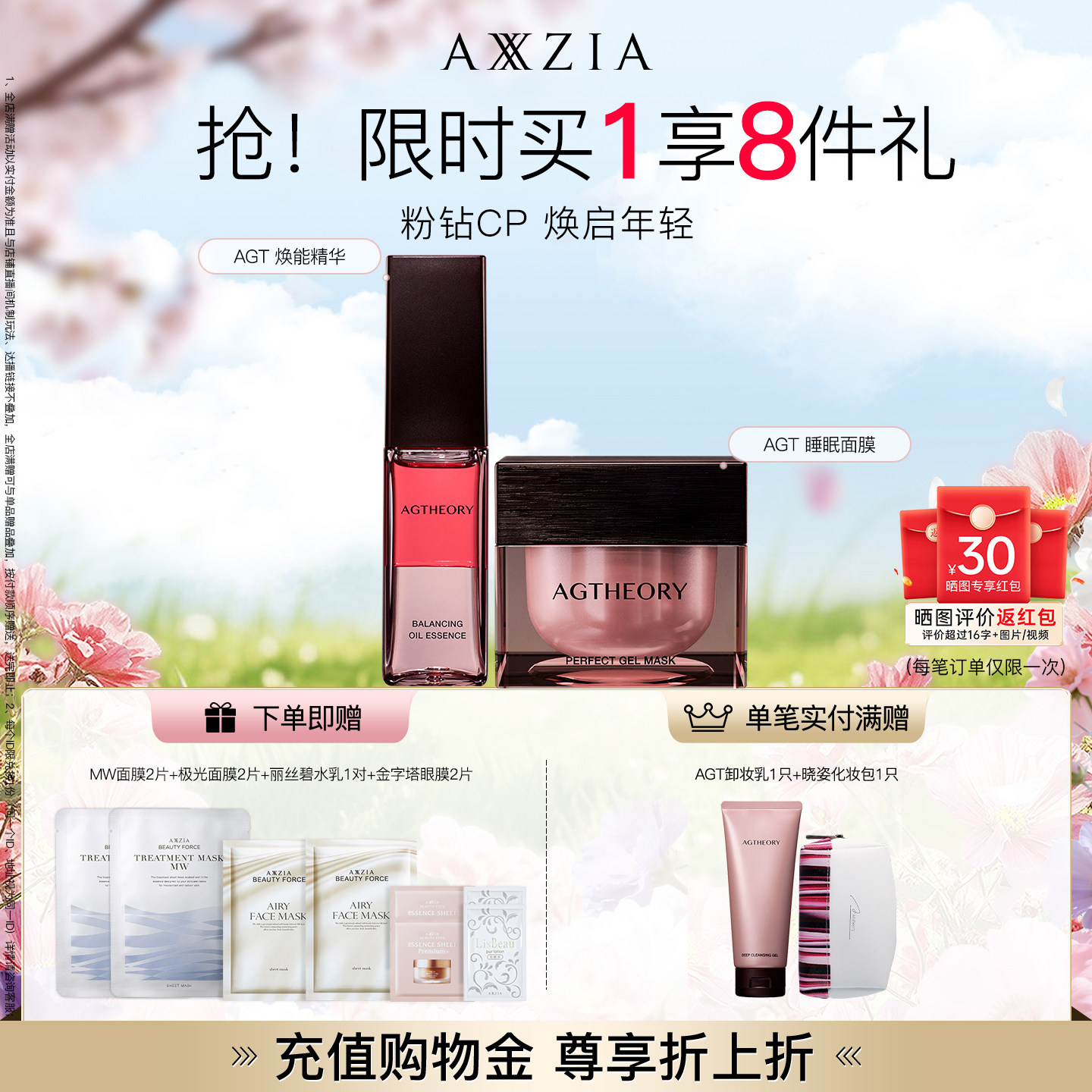 【晓姿粉钻CP】AGT涂抹睡眠面膜+AGT焕能精华水油同补透亮紧致