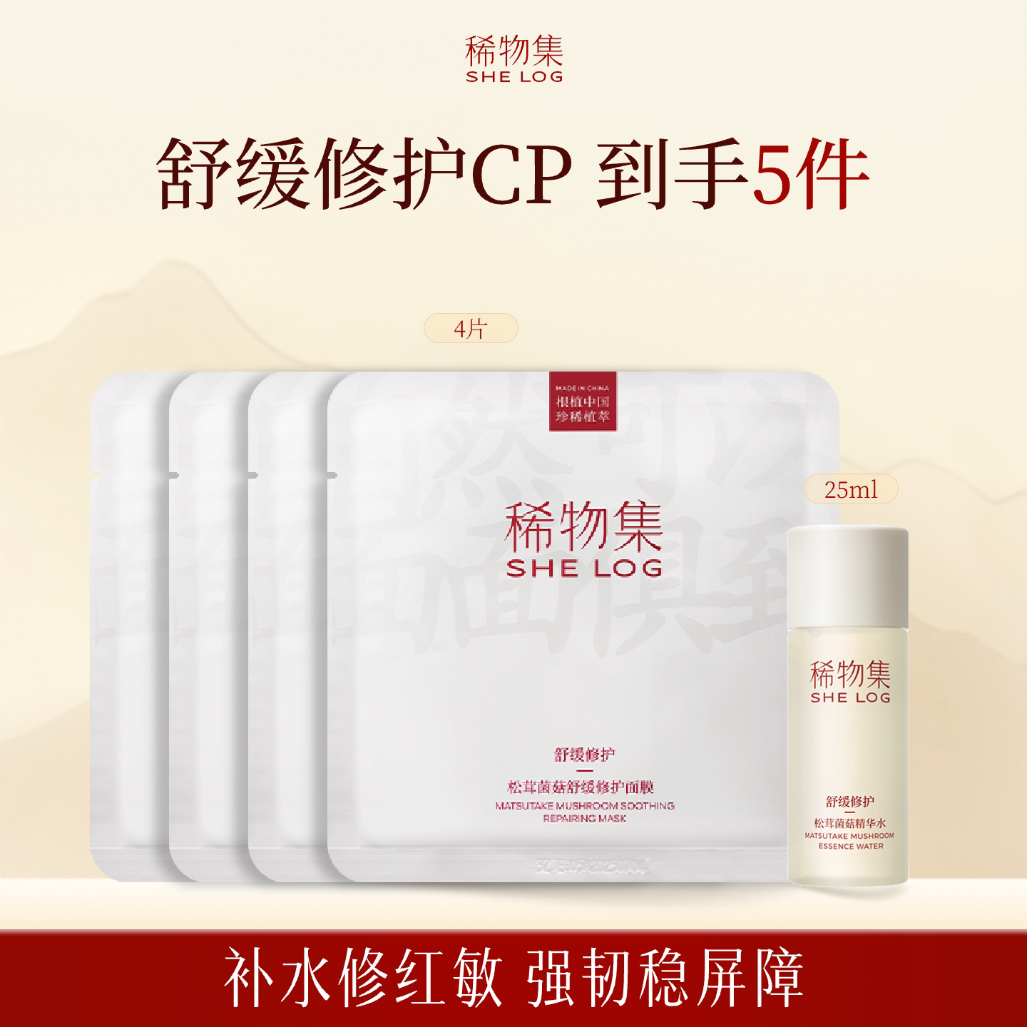 修护面膜4片+松茸水25ml 修护舒缓保湿