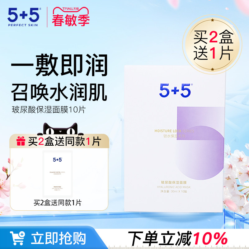 5+5玻尿酸保湿面膜日常补水亲肤水润泽男女士通用贴片式面膜10片