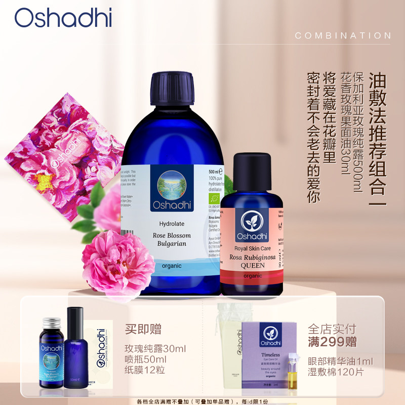 oshadhi德国O家保湿油敷法面膜玫瑰永久花纯露面部精华油套装保湿