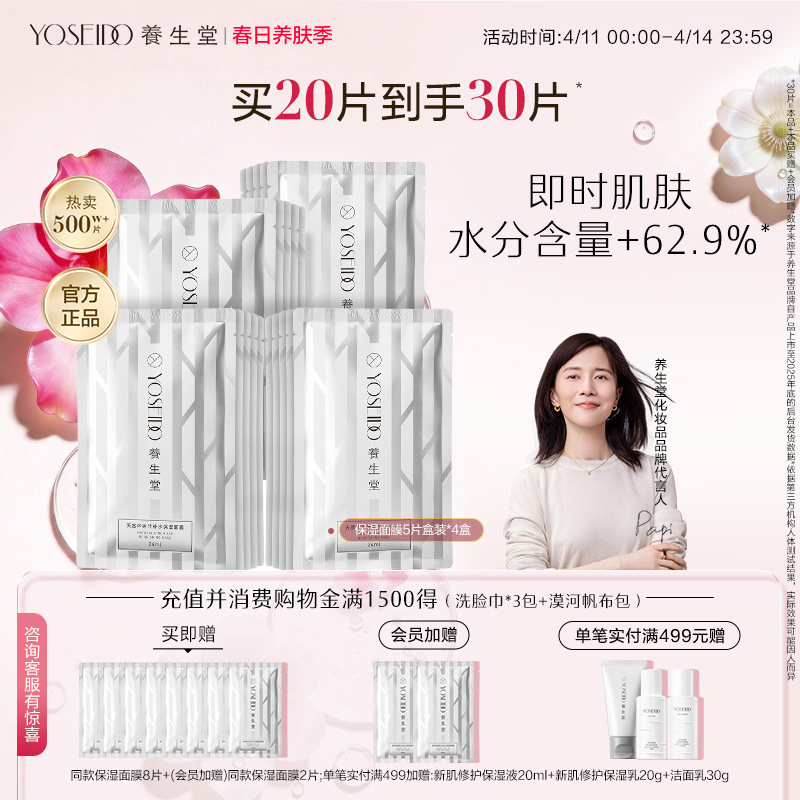 养生堂白桦树汁补水保湿面膜女面部护肤滋润呵护白膜5片改善皮肤
