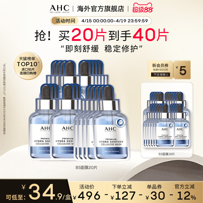 AHC 玻尿酸B5小安瓶面膜8盒囤货装舒缓保湿补水男女护肤官方正品
