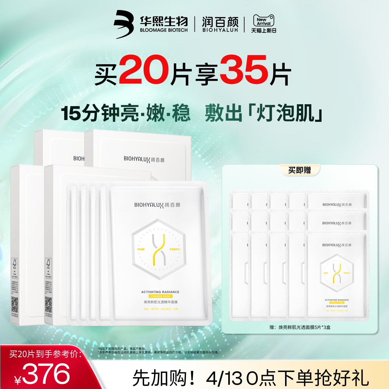润百颜修光面膜修护补水保湿焕亮玻尿酸华熙生物