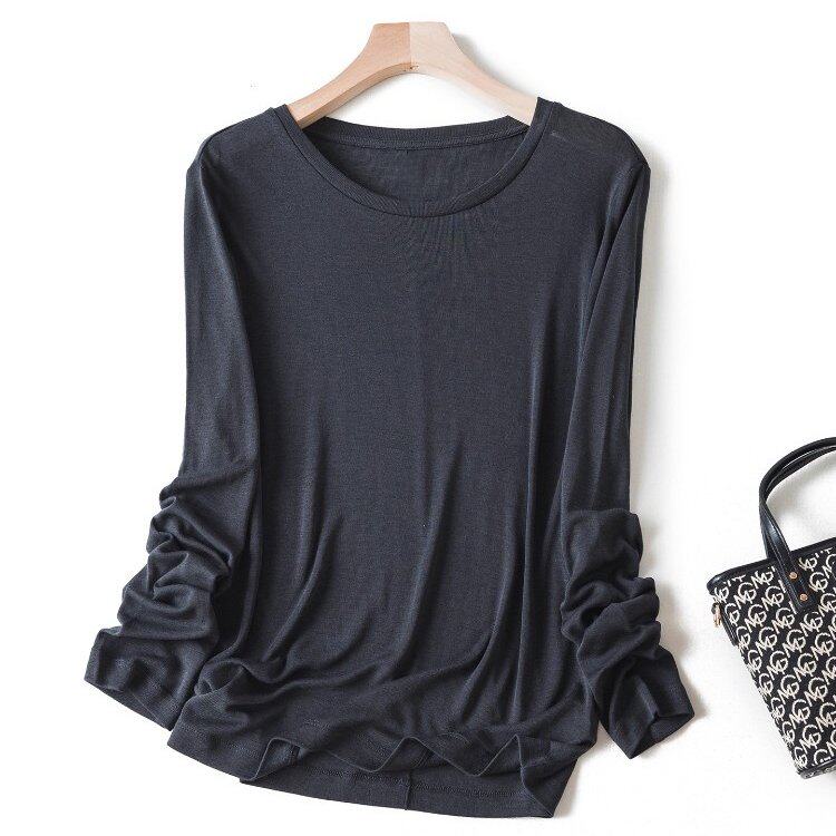 莱赛尔天丝面膜T恤女醋酸羊毛新款圆领长袖内搭衣宽松显瘦百搭款