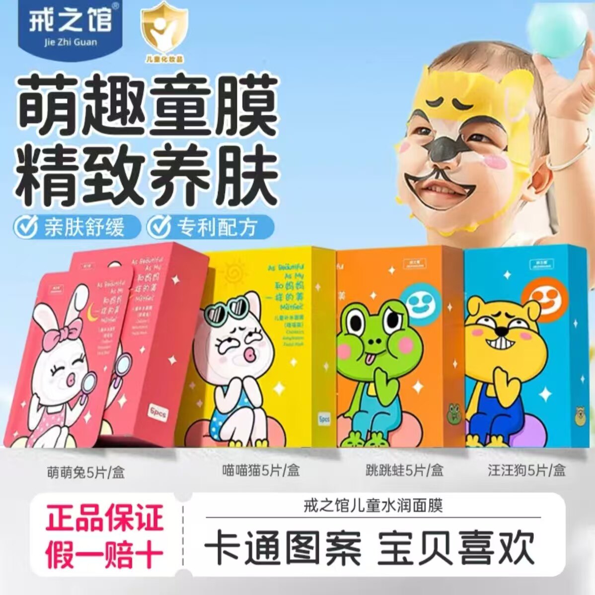 戒之馆儿童卡通面膜男宝女宝学生补水保湿面膜3-12岁晒后补水面膜