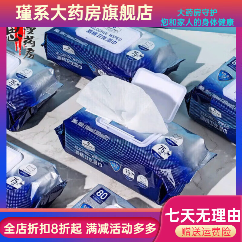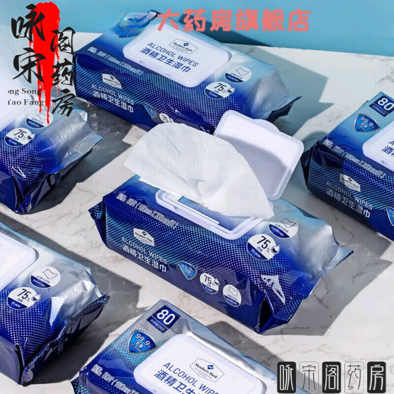 A 安生罗比Mark酒精卫生湿巾80片*1包加厚水刺无纺布约75%酒精擦手 3包 3*80抽