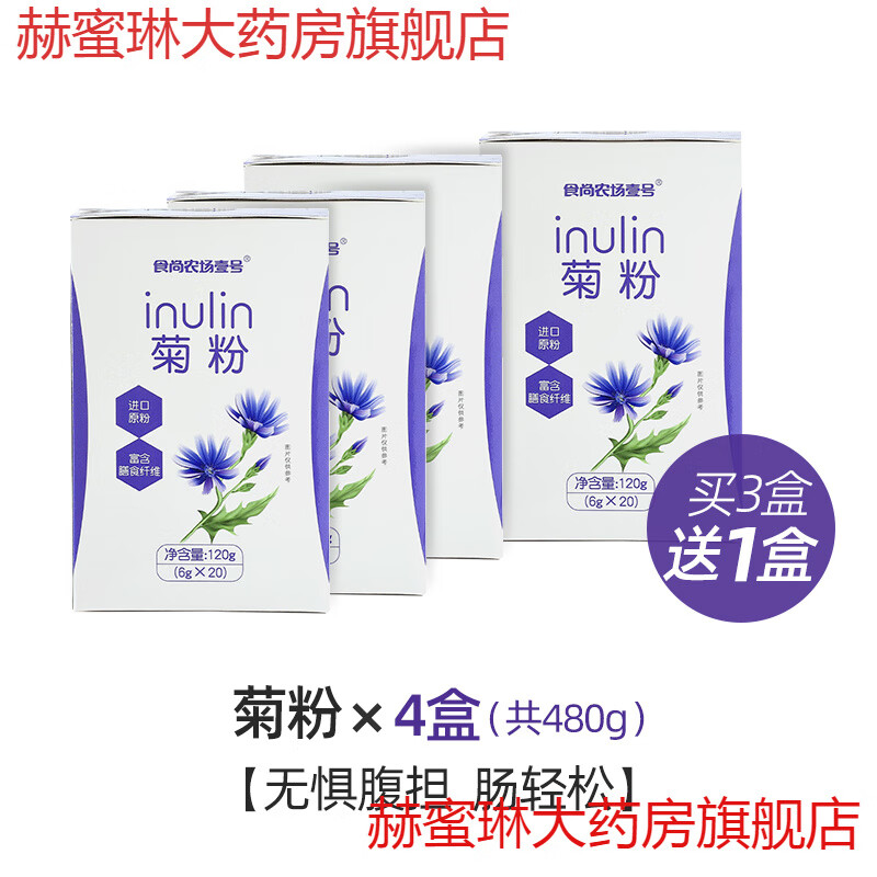 通用进口纯菊粉高膳食纤维益生元菊苣菊芋根水溶性低聚果糖小袋装 0rafti菊粉3盒贈1盒共4盒 80条*4盒